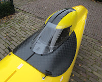 Jan rijdt nu deels met bedieningspootjes van carbon. Dat gaat prima, maar carbon is zo stug dat dit mogelijk bij een aanrijding tot verwondingen kan leiden. Nu alle randen van de kappen veilig zijn voorzien van beschermende neopreen omrandingen, is het niet OK dat we een scherp mes in de vorm van een strip carbon vlak bij het gezicht aanbrengen.